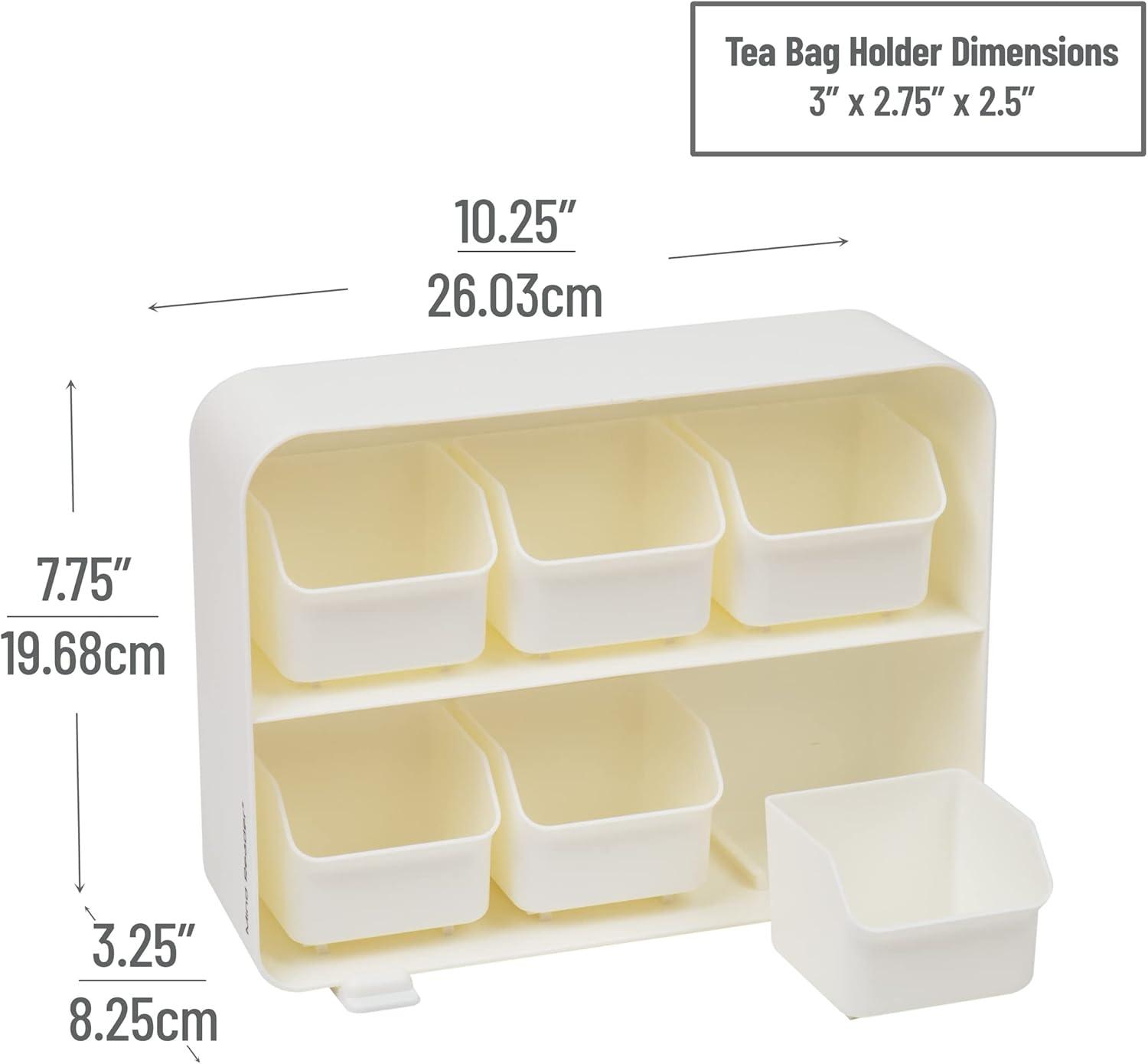 Dimensions: The 6-drawer tea bag holder measures a compact 10.25 long x 3.25 wide x 7.75 inches tall (8.25 x 26.03 x 19.68 centimeters) and weighs 1.12 lbs (0.50 kilograms)