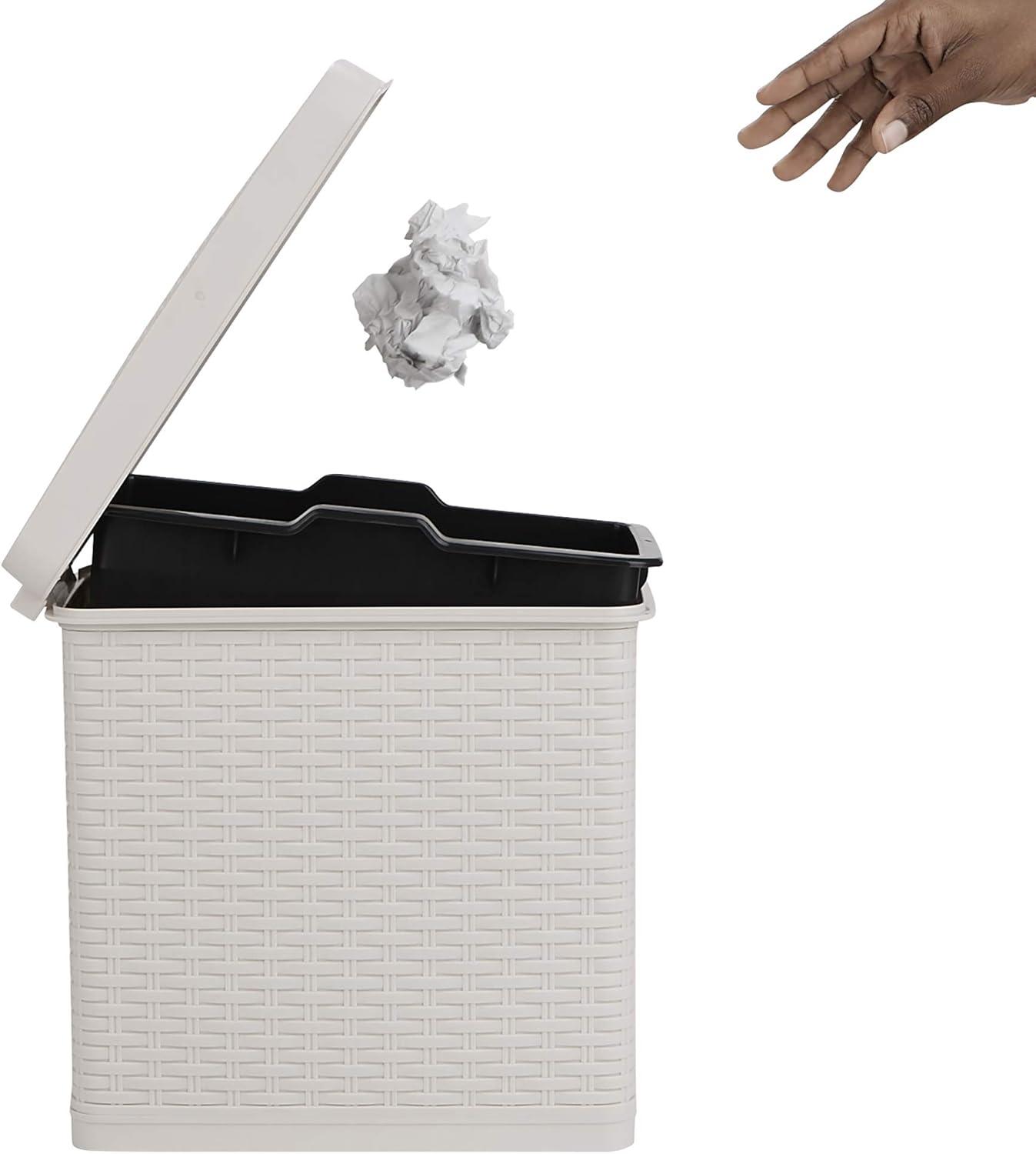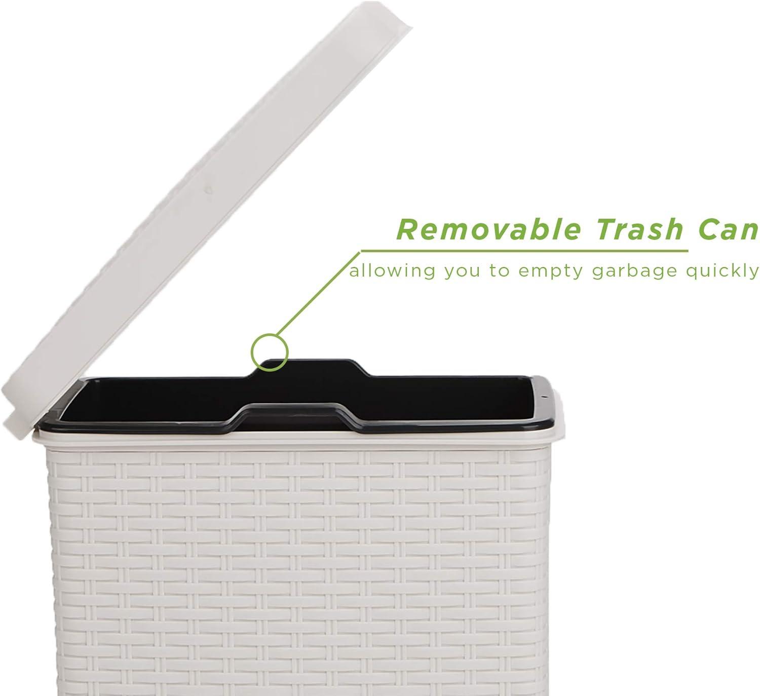 Mind Reader Trash Can, 5.5L (1.5 gal) Capacity, Bathroom Decor, Hands Free Lid, Square, 7.75″ L x 7.75″ W x 11″ H, Ivory(Ivory Rectangle Bin)