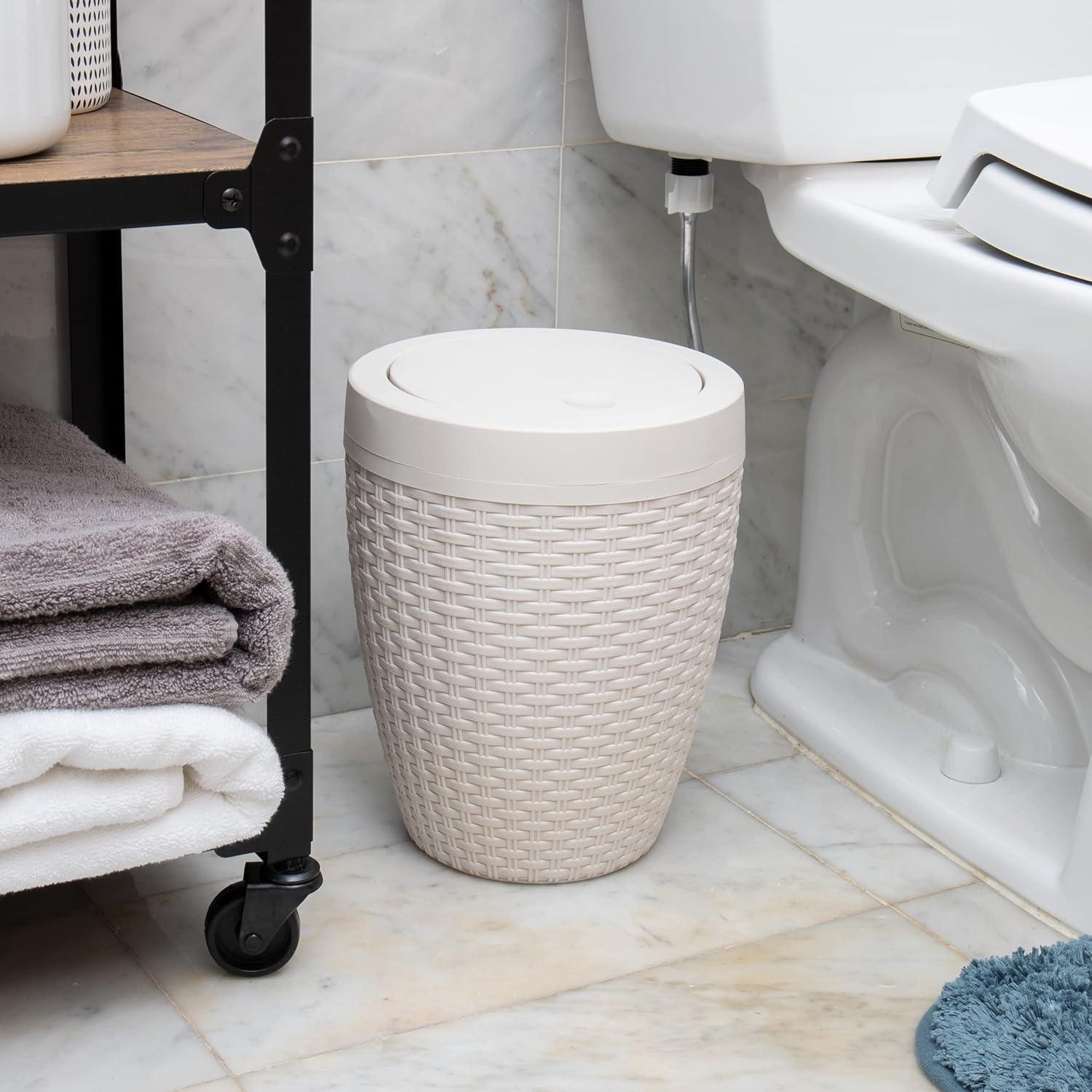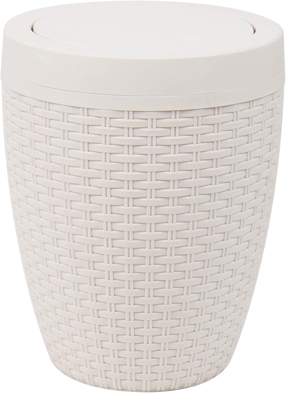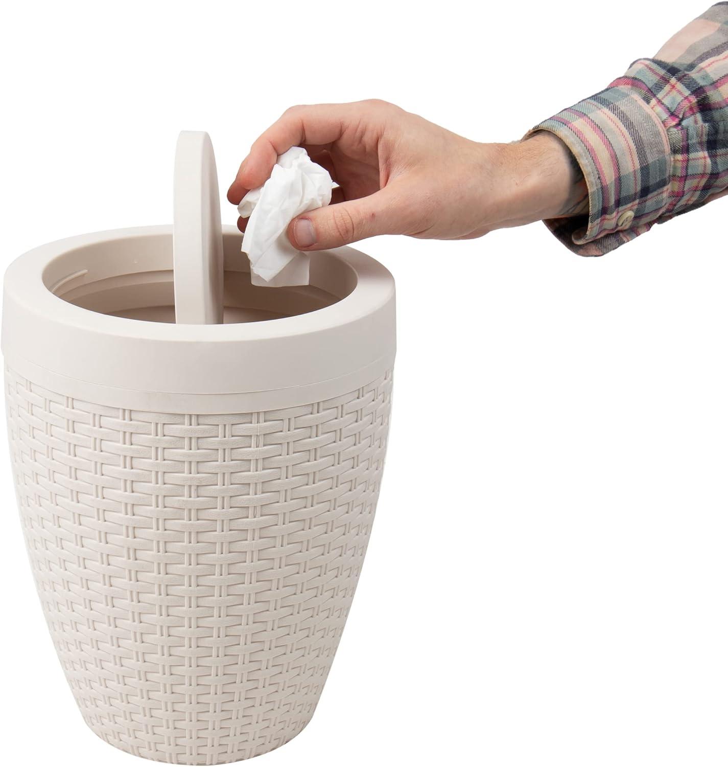 Mind Reader Trash Can, 5.5L (1.5 gal) Capacity, Bathroom Decor, Hands Free Lid, Square, 7.75″ L x 7.75″ W x 11″ H, Ivory(Ivory Round Bin)