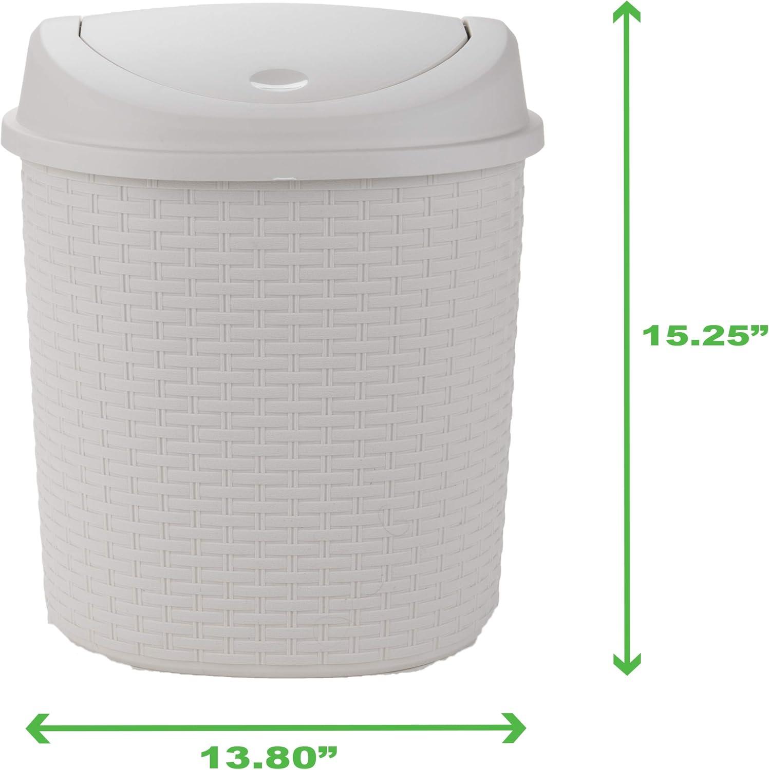 Mind Reader Trash Can, 5.5L (1.5 gal) Capacity, Bathroom Decor, Hands Free Lid, Square, 7.75″ L x 7.75″ W x 11″ H, Ivory(Ivory)