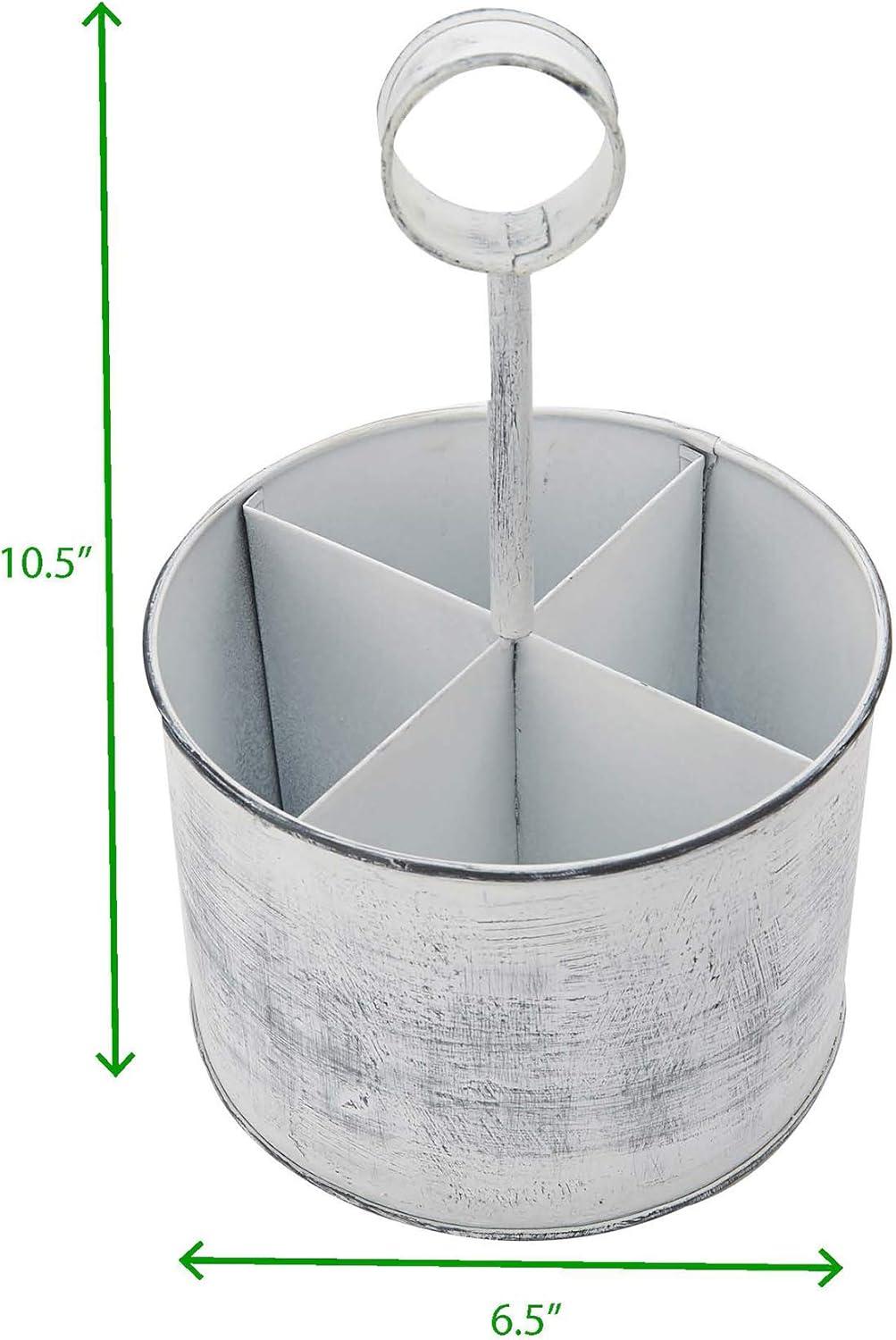 Mind Reader Utensil Holder, Silverware Organizer, Caddy, Cutlery Holder, Galvanized Metal, 7″ L x 7″ W x 9.25″ H, Silver(White Paint)