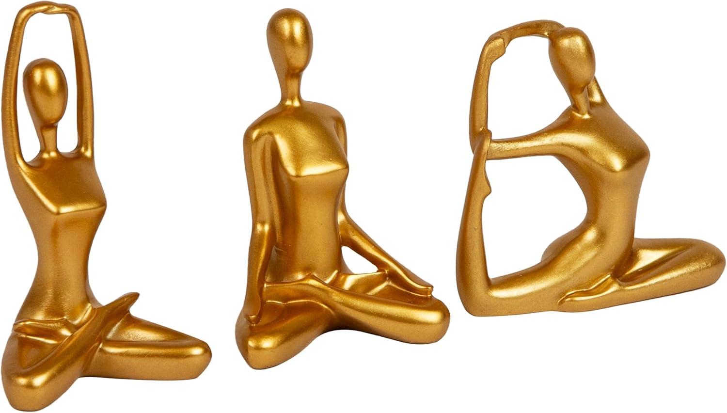 Mind Reader Yoga Figurine Set, Meditation Statues for Home, Office, or Studio Decor, Elegant Mindful Gift, Resin, 2.75″ L x 2.25″ W x 4.75″ H, Set of 3, Gold
