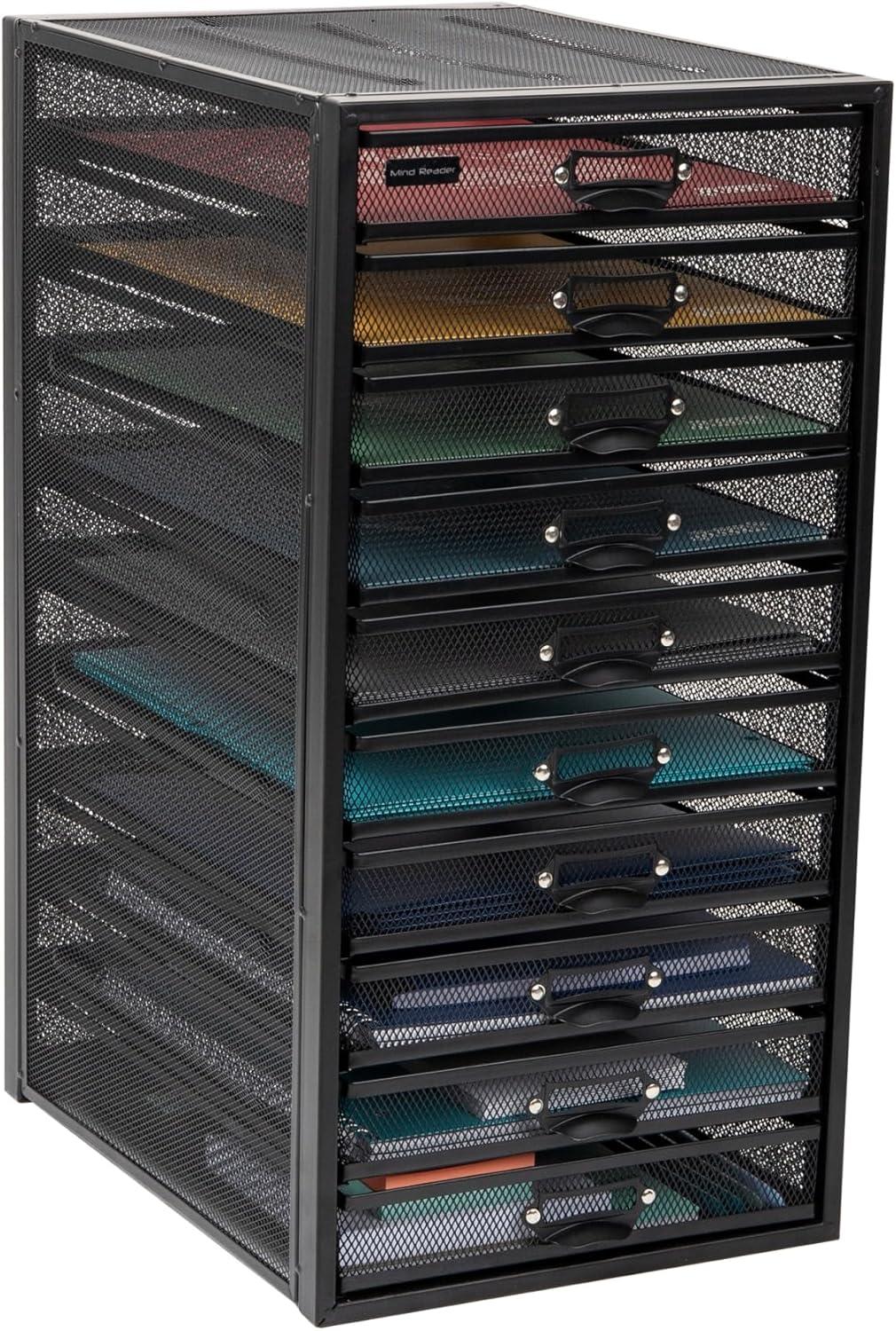 • Mind Reader 10-Drawer Desk Organizer for Office Supplies, Crafts, Mail Sorting & More, Metal Mesh, 10.75″L x 14″W x 21.25″H, Black(Black)
