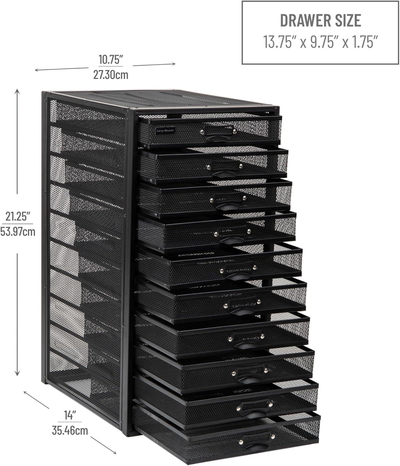 • Mind Reader 10-Drawer Desk Organizer for Office Supplies, Crafts, Mail Sorting & More, Metal Mesh, 10.75″L x 14″W x 21.25″H, Black(Black 5 Drawer)