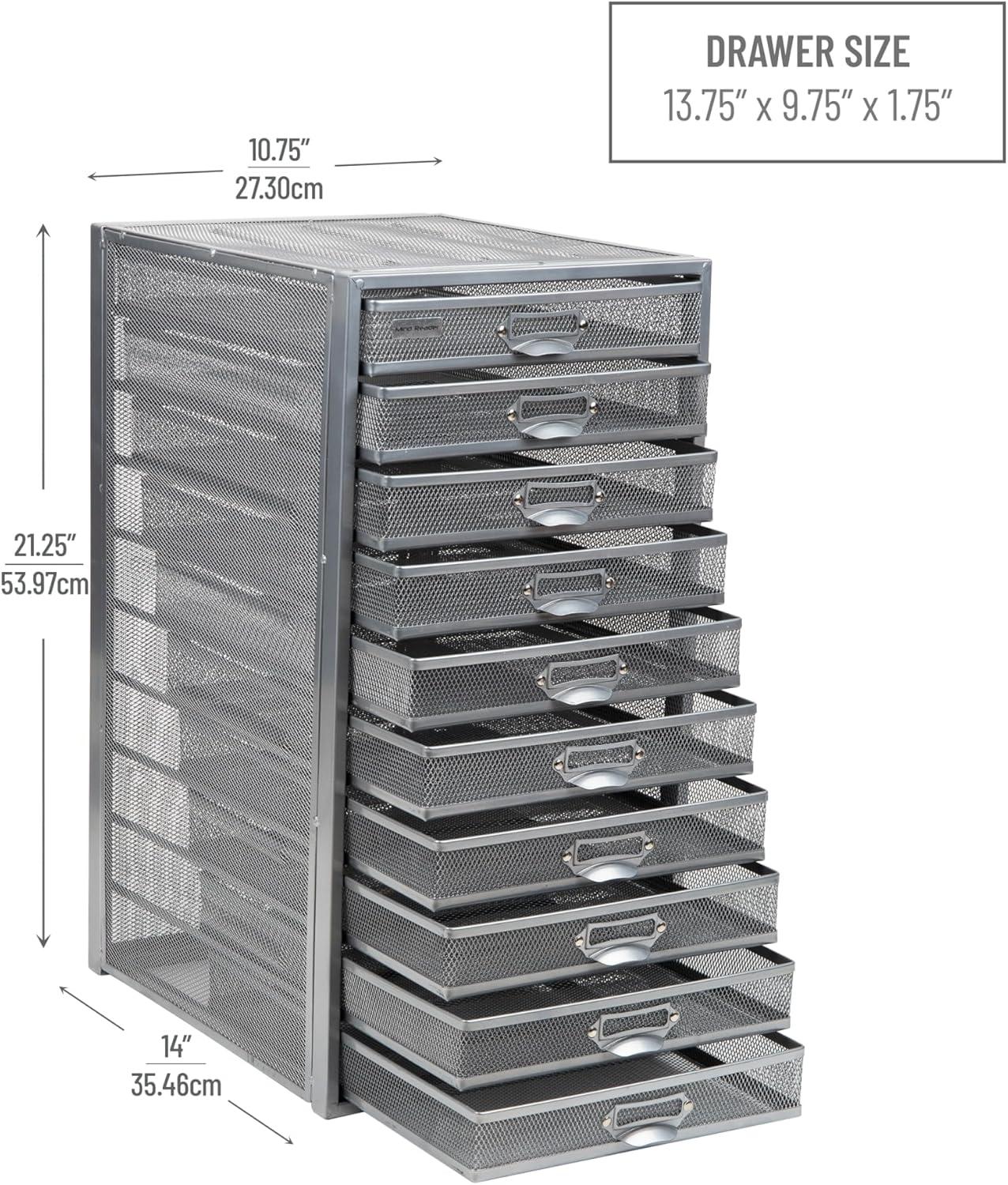 • Mind Reader 10-Drawer Desk Organizer for Office Supplies, Crafts, Mail Sorting & More, Metal Mesh, 10.75″L x 14″W x 21.25″H, Black(Silver 10 Drawer)